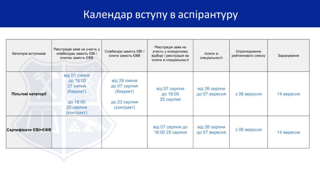 Детальна інформація, дати та етапи вступної кампанії